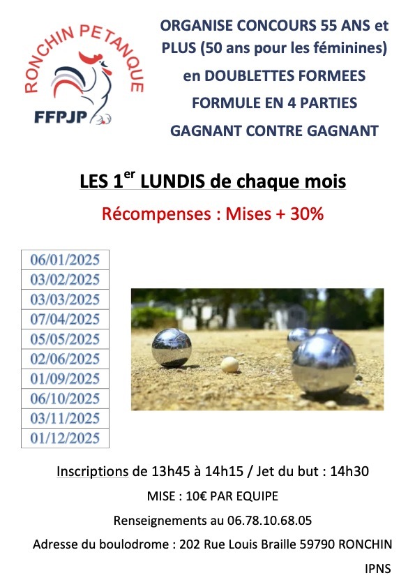Concours du 1er Lundi du mois ouvert au plus de 55 ans
